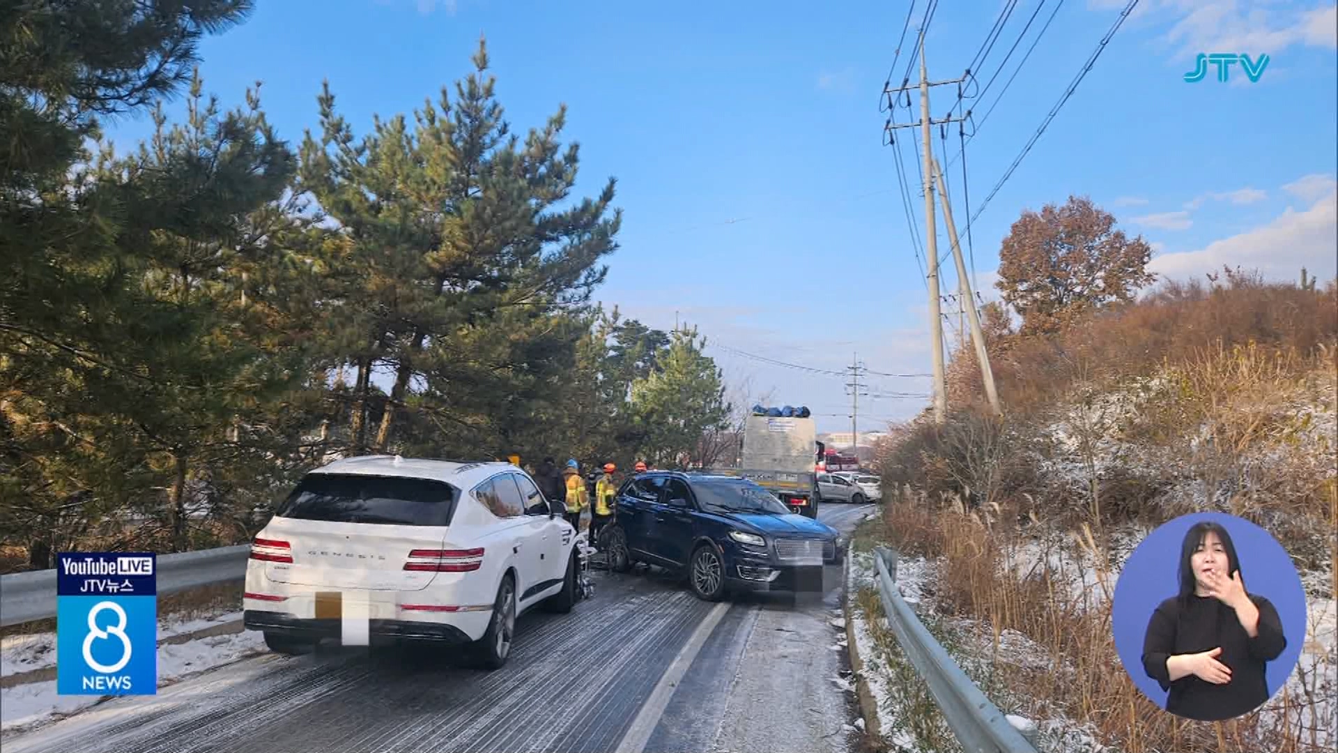 빙판길 사고로 차량 8대 충돌...4명 다쳐