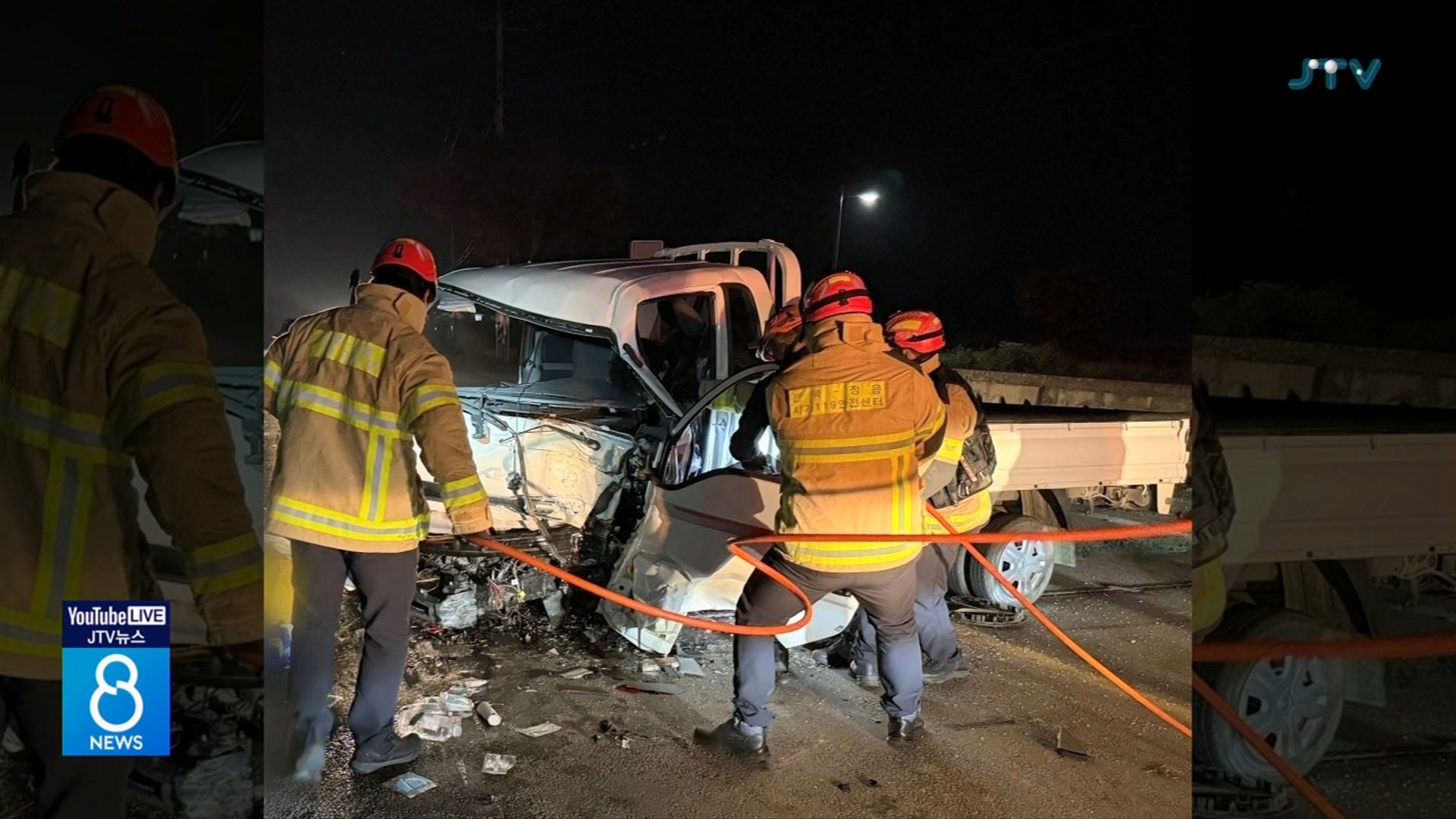 순창서 1톤 트럭 교각 충돌...3명 사상(화면)