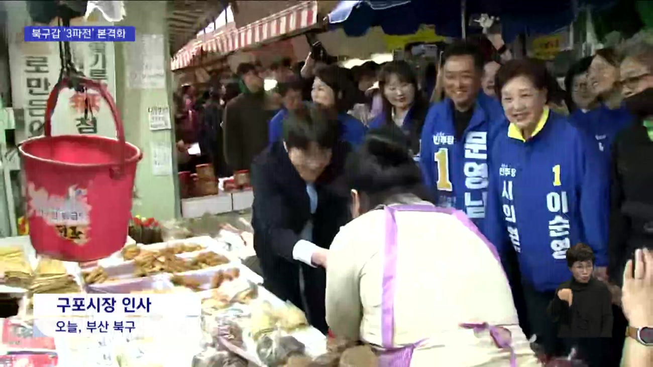 한동훈 전 국민의힘 대표는 하 전 수석에 앞서 구포시장을 돌면서 맞불 유세를 벌였습니다.